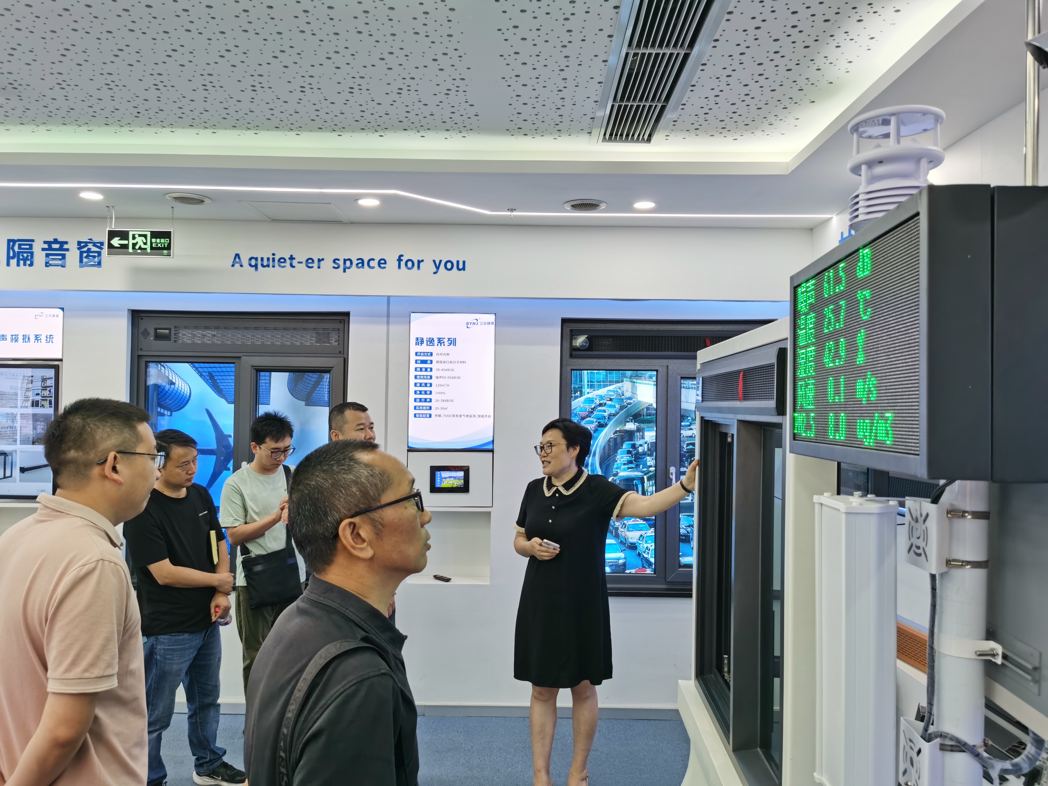 2023年6月29日上午,成都环境水务建设有限公司,四川省绿色发展促进会各领导莅临静景通风隔声窗参观交流,就我司声定向技术、噪声智能监测系统、通风隔声窗以及噪声治理工程等问题展开深度沟通交流。